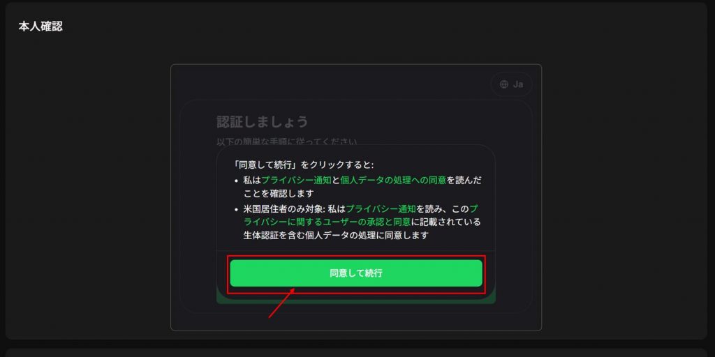 画面上に表示されている「身元確認を行う」をクリックしてください。
