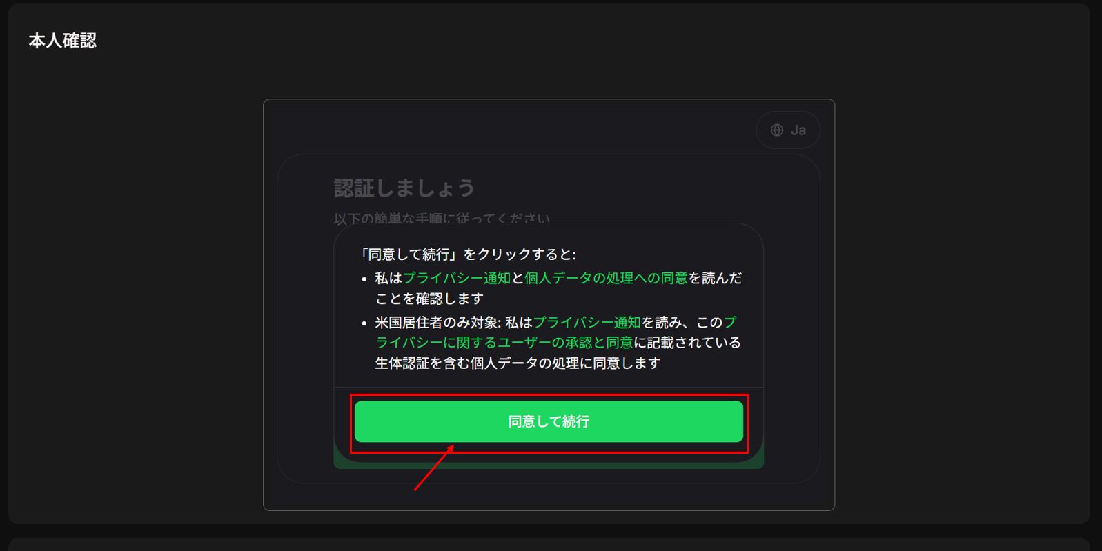 内容をご確認のうえ「同意して続行」をクリックしてお手続きを進めてください。